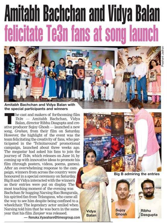 In the year 2016, Reliance Entertainment and Team TalentHouse organized a poster design competition to promote the film TE3N. I submitted several designs for the competition, and one of them was selected by Shri Amitabh Bachchan and the team behind TE3N. The award ceremony took place in Mumbai, where Mr. Amitabh Bachchan, personally handed over signed posters to the winners. It was an unforgettable moment to receive such recognition from the legendary actor himself.